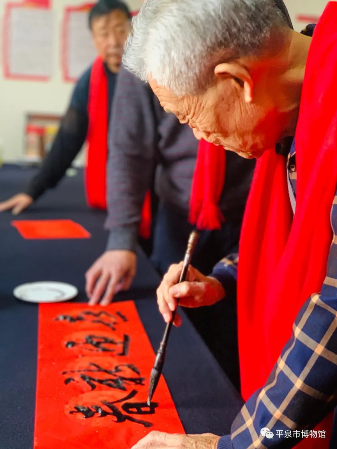 都纷纷下场书写喜庆的对联中