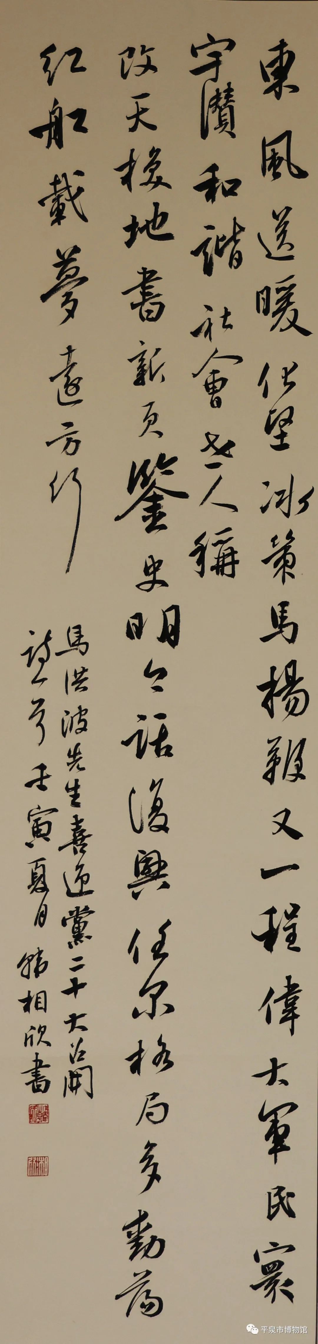 此次活动充分展示天津、唐山、承德三地书画艺术成果,也为三地的书画家加强交流,切磋技艺,学习借鉴提供了良好的平台。本次展览共展出作品百余幅,其中平泉市博物馆参展作品为16幅。