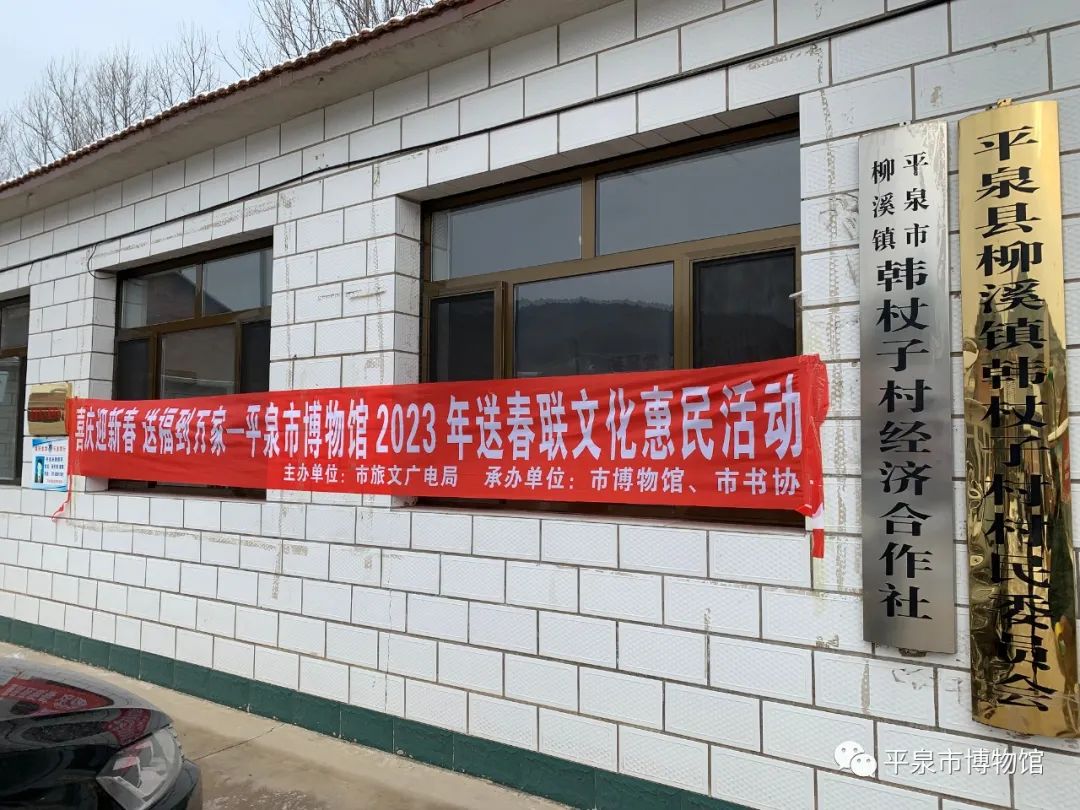 2013年1月13日,由市旅文广电局主办,我馆和市书协联合举办的“喜庆迎新春 送福到万家”——平泉市博物馆2023年送春联文化惠民活动在柳溪乡韩杖子村部如火如荼的开展着。