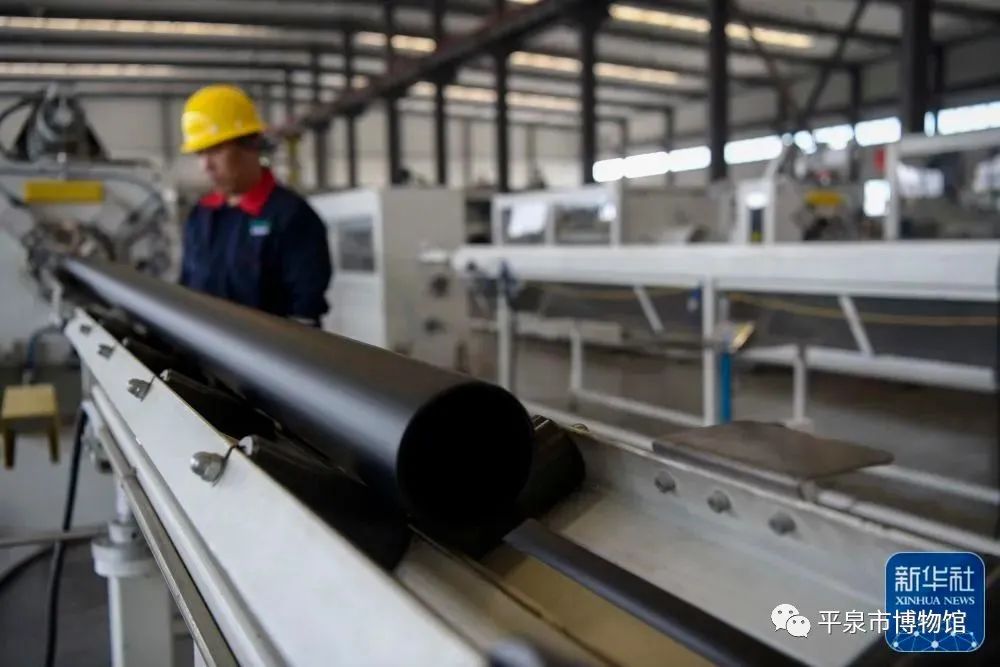 ↑4月2日,在承德县高新技术产业开发区一家环保管材生产企业,工人在生产车间忙碌。