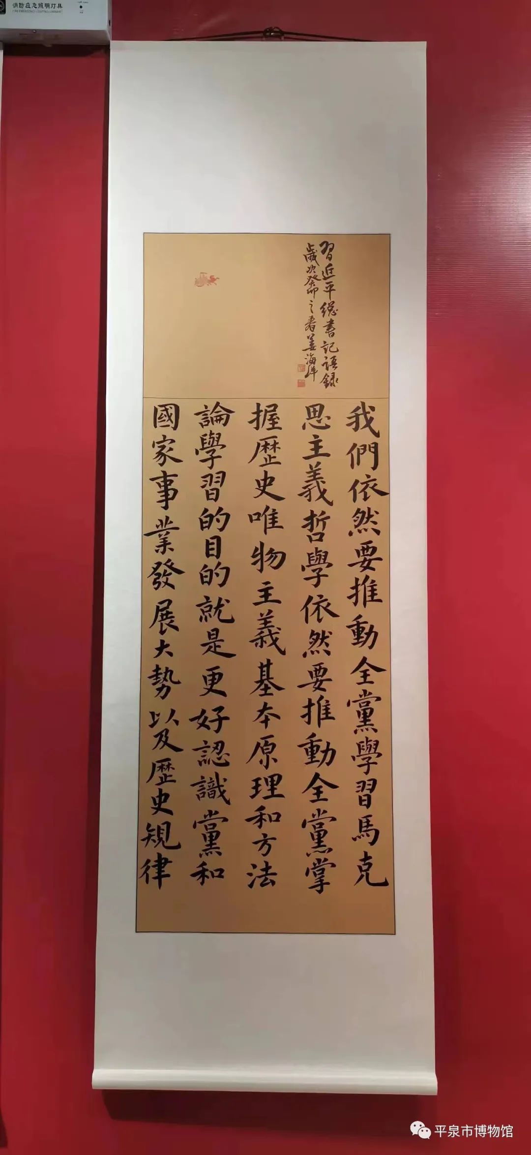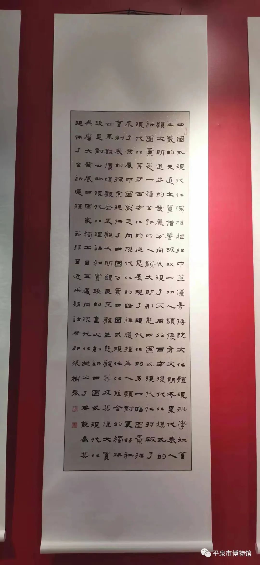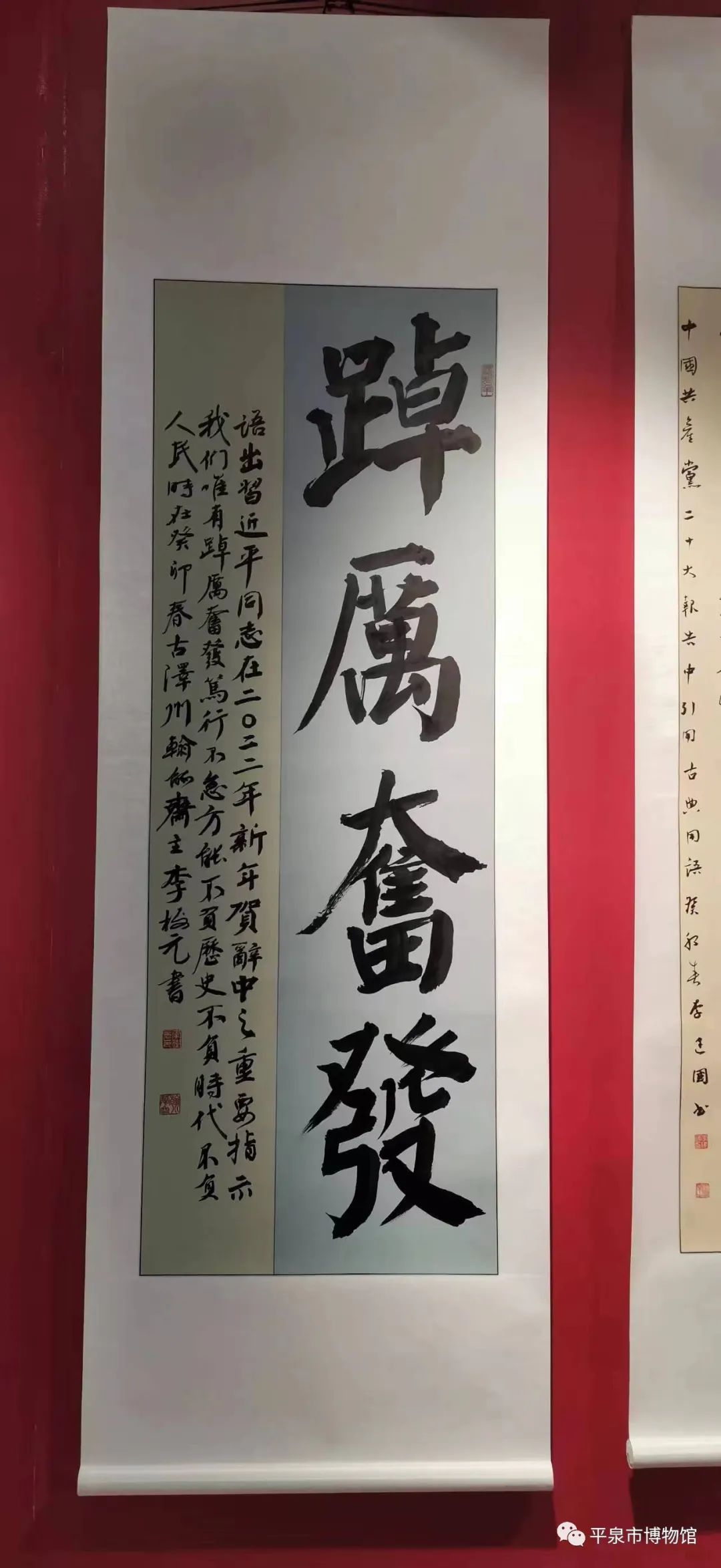 此次活动由平泉市旅游和文化广电局党组书记马云鹏主持开幕,中共平泉市委统战部副部长刘刚介绍本次活动情况,平泉市书法家协会主席李建国致辞,平泉市人大副主任吴景寅讲话并宣布展览开幕。