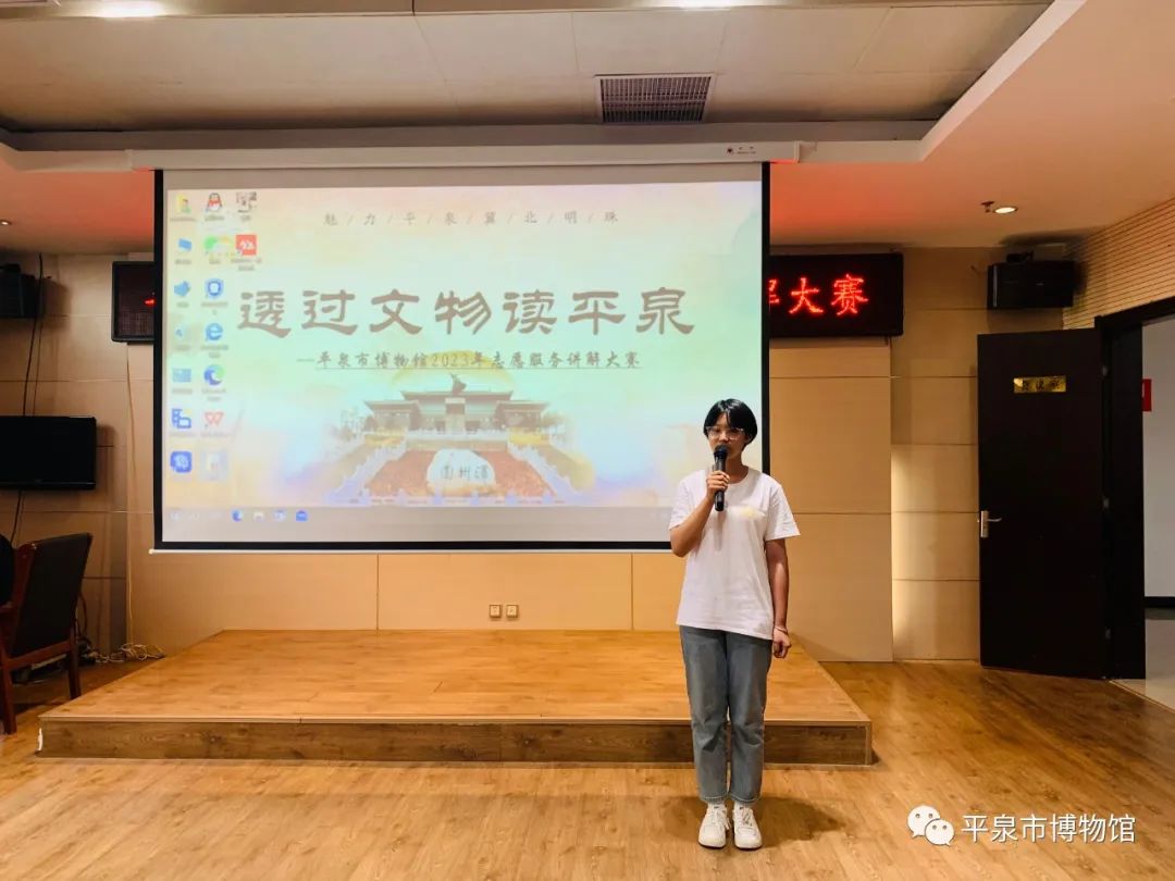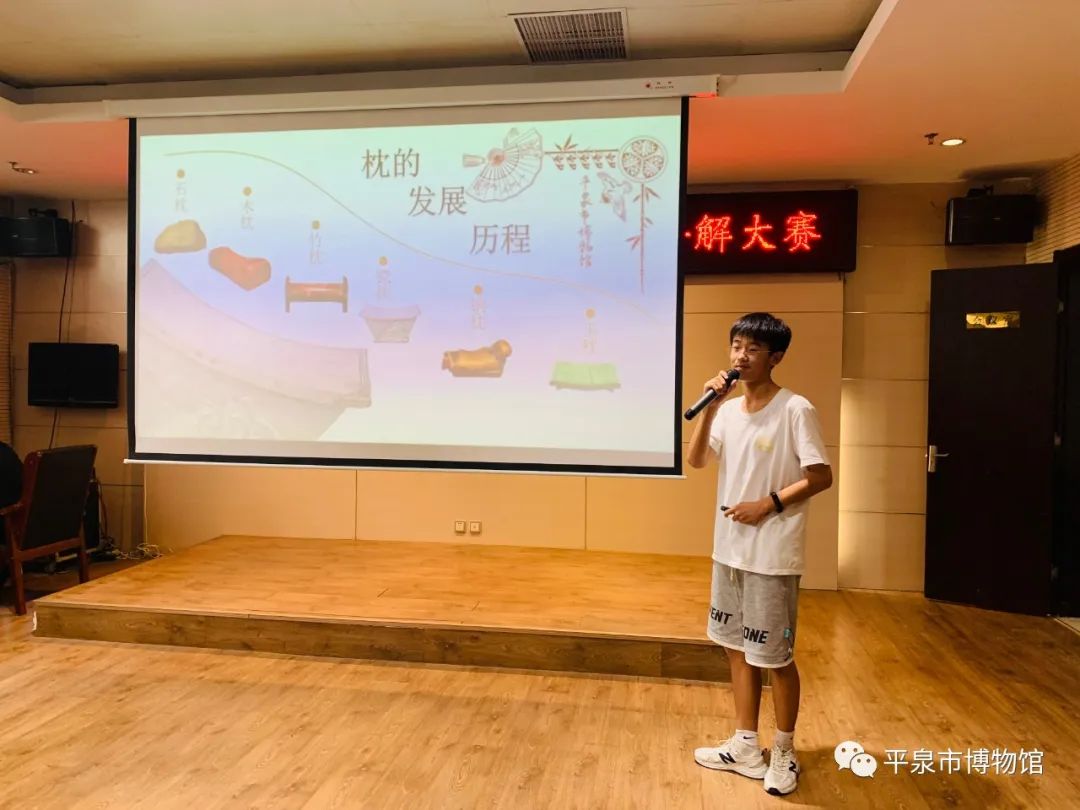 比赛现场,志愿者们通过抽签后按顺序轮番进行讲解,讲解范围为平泉市博物馆展品,选手们流利自然的口语,他们落落大方、声情并茂,将所学的文物知识娓娓道来,生动流畅的语言将展品跨越千年的距离带到观众的面前,他们的自信感染着台下的观众评委。
