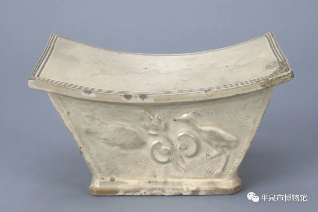 第十二期展示的是国家二级文物——白釉鹭鶿水波纹瓷枕