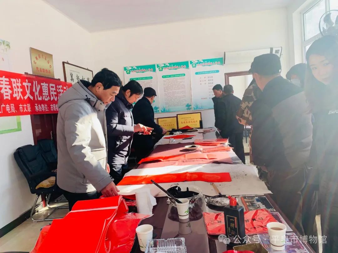 充分发挥社会主义核心价值观涵育基地、河北省爱国主义教育基地、河北省社会科学普及基地、河北省民族团结进步教育基地作用,于2024年1月29日—2月3日期间分别走进道虎沟乡李家梁子村,平泉市博物馆,党坝镇大东沟村,华墅社区,天龙乳业,走进驻军部队,有意义的春联不仅注入文化气息同时带去年的韵味,六次活动共送出千余幅春联和福字。