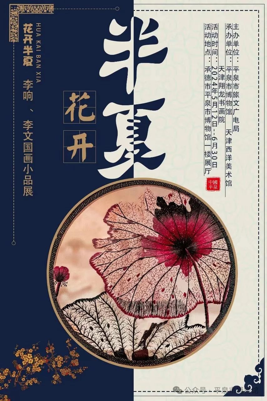 临展二:展期:5月12日-6月30日,平泉市博物馆一楼北展厅举办《花开半夏——李响、李文国画作品展》,展期50天。