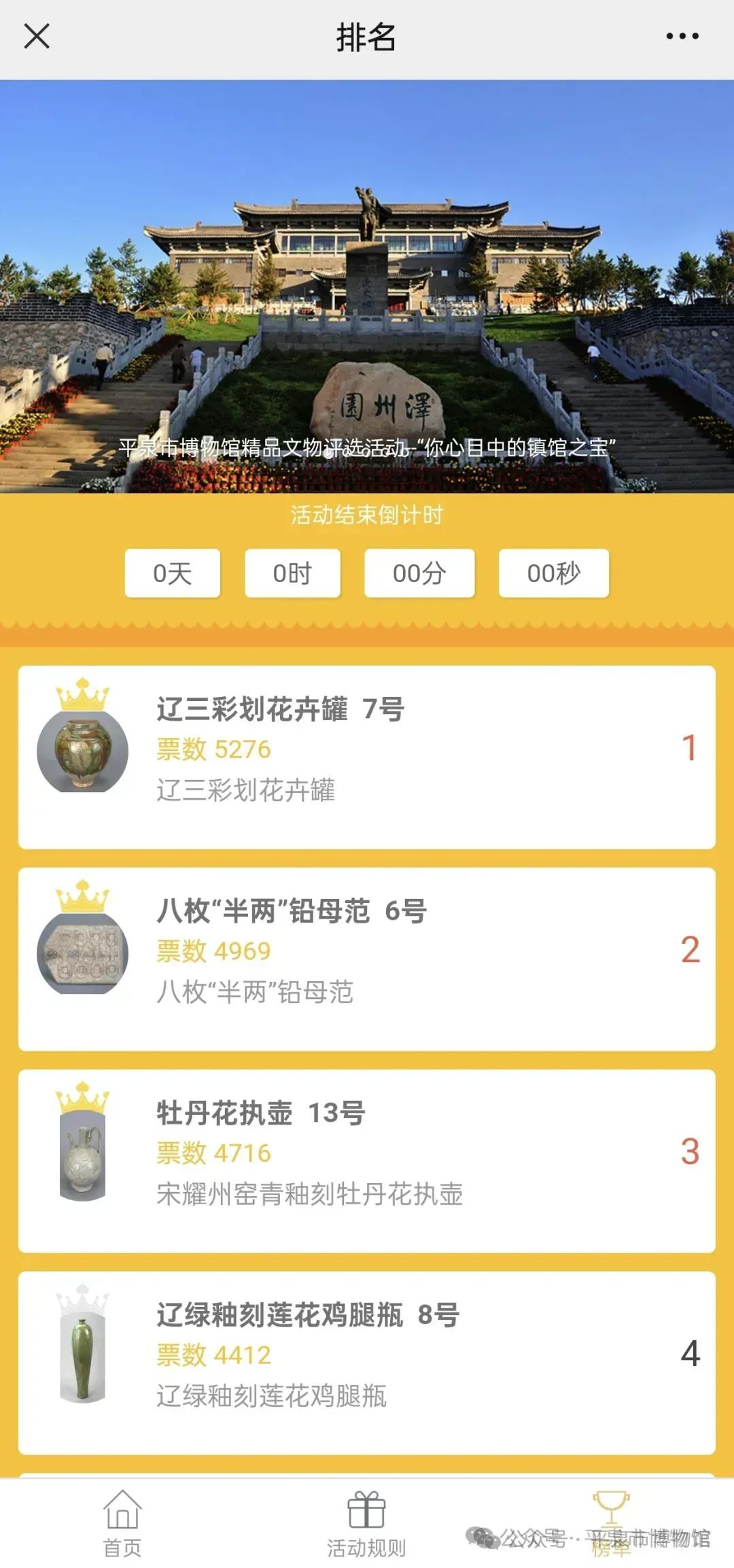 2、2024年4月10日--2024年4月30日展开平泉市博物馆精品文物评选活动——“你心目中的镇馆之宝”网络投票评选活动。
