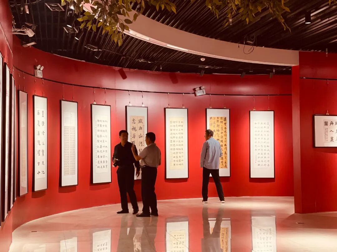 “革命诗词书法展”展出45幅书法作品,汇集了20余位书法家的精品力作,涵盖了篆、隶、楷、行四种书法,形式包括斗方、对联、横幅、条屏多种形式,书法家用饱含深情的笔墨表达了缅怀和致敬先烈,不忘历史,热爱党和祖国,珍爱和平的家国情怀与世界和平的美好祈愿。此次书法展以艺术为载体,将抗战精神与书法艺术深度融合。