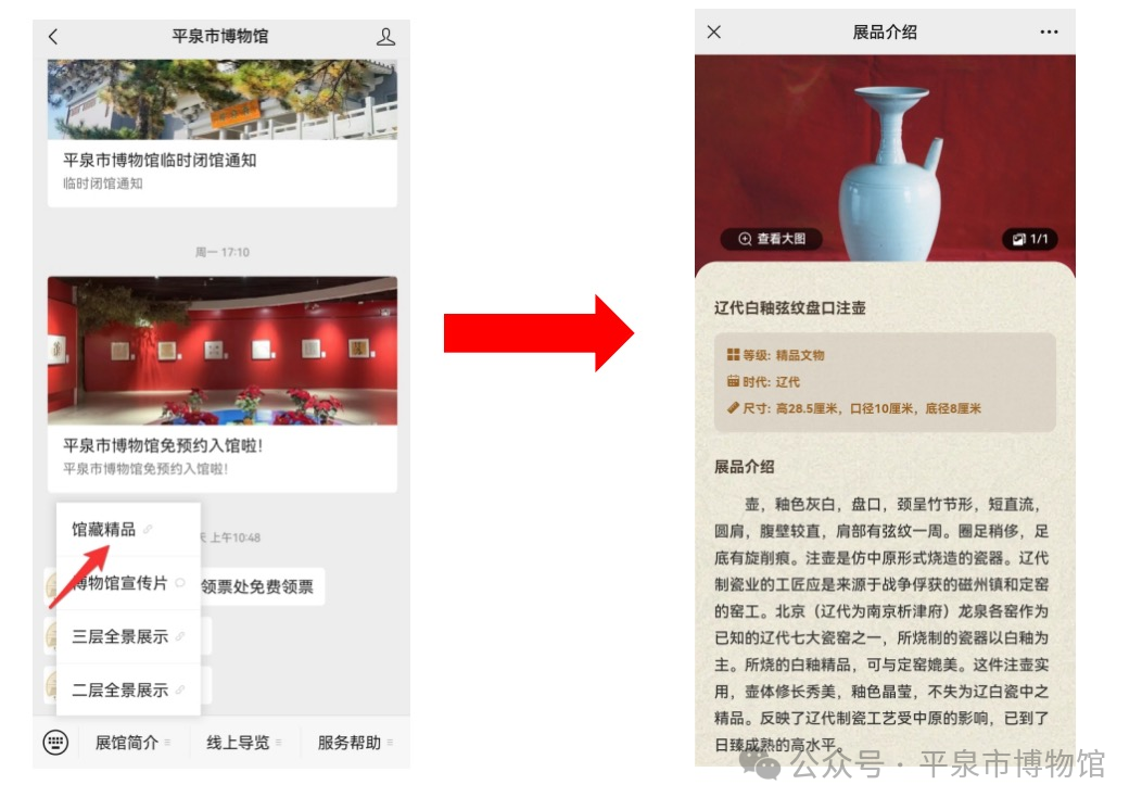 各位观众,平泉市博物馆官方公众号服务全面升级啦!