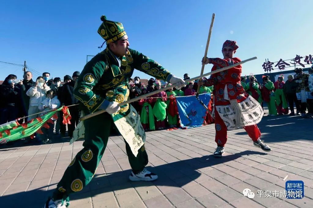 元宵节将至,在河北省丰宁满族自治县黄旗镇黄旗东村,民间艺人在村内文化广场表演有着悠久历史的省级非遗项目“黄旗武会”,吸引游客和周边群众前来观赏,喜迎元宵节到来。“黄旗武会”是当地一种独具特色的民间艺术表演形式,表演以传统武术为基础,以锣鼓伴奏,颇具观赏性。